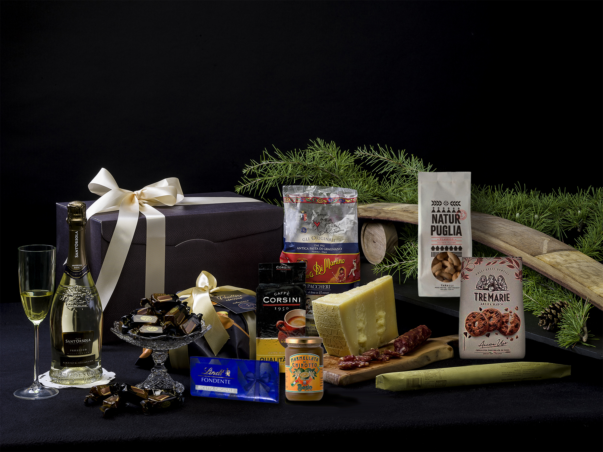 I prodotti sopra indicati sono quelli effettivamente contenuti nel cesto; la foto è indicativa della tipologia di assortimento della confezione.
